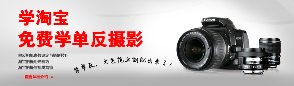 f、学习淘宝运营班,还可免费学习单反摄影方法,宝贝拍摄技巧。产品拍摄不求人,自己动手丰衣足食。