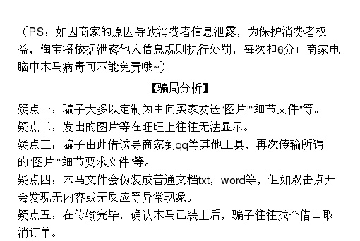 大家好,在淘宝店铺的运营过程中,各类骗术始终是我们作为卖家比较头疼的事情,汇材电商学院在临沂淘宝培训课程过程中,也遇到了各种不同类型的骗术,使得小伙伴们上当受骗,在此,给大家揭露一个发送文件给卖家,接收后在卖家电商中植入木马,从而盗取淘宝卖家的订单信息,对买家实施诈骗的一种骗术。请小伙伴们在日后的淘宝运营推广过程中一定要防止上当受骗。